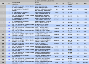 La competición, que ha reunido a numerosos aficionados y entusiastas del motor, ha visto como Óscar Cabrera y Aitor Cambeiro (20:05,2) se alzaban con la victoria en la clasificación general, demostrando una sincronía y habilidad excepcionales a lo largo de todo el recorrido con su Citroën C3 Rally2. Álvaro Caballero y Noé González (20:28,3), con BMW m3, y Rayco Rodríguez junto a Cristopher Rijo (20:32,7), en su debut con el Citroën DS3 R3, completaron el podio, ocupando el segundo y tercer lugar, respectivamente, tras unas actuaciones destacadas que mantuvieron la tensión y el entusiasmo hasta el último momento.