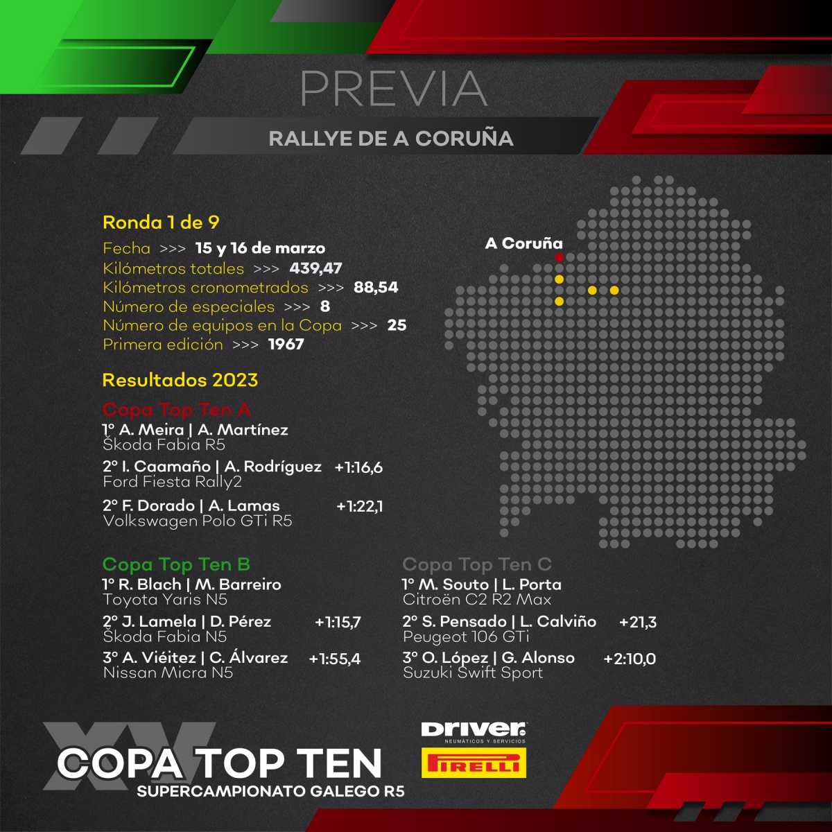 La Top Ten «C» estará muy nutrida de participantes, 14 en total, con uno de los veteranos de esta copa, David Rivas, defendiéndose de Marcos Sanromán, campeón de la Copa Pirelli AMF, Guillermo Martínez, que ahora participa en esta división con el Fiesta R2T, los hermanos Vázquez estrenándose con el Clio Rally5, Dani Montoto, Dani Castro y muchos más que pueden ser firmes candidatos al podio este fin de semana.