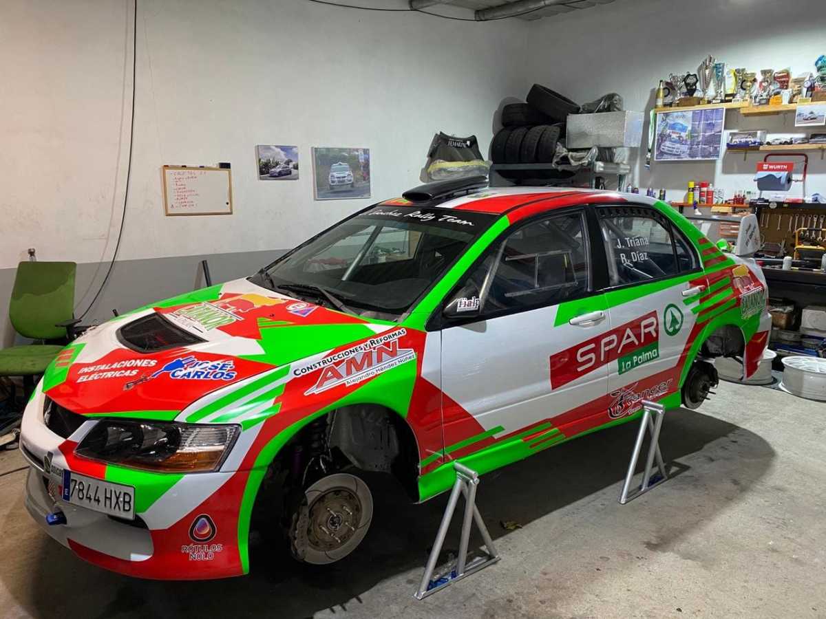 El piloto palmero Joel Triana Rodríguez tiene su Mitsubishi Lancer Evo listo para competir este sábado en el Shakedown de Las Caletas.