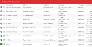 La Copa Clásicos de Velocidad también vio su dosis de emoción, con Aitor Sagastizabal y Pedro Piña llevándose el primer puesto. Mientras tanto, en la Copa Junior Copiloto, Carolina Abascal se destacó en la primera posición, seguida por Sergio Fernández en segundo lugar y Álvaro Calera en tercero.