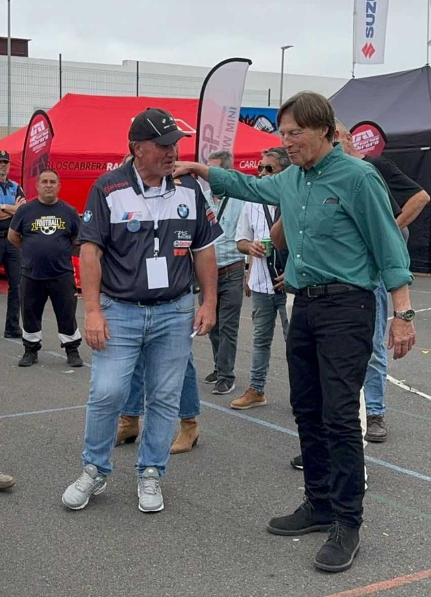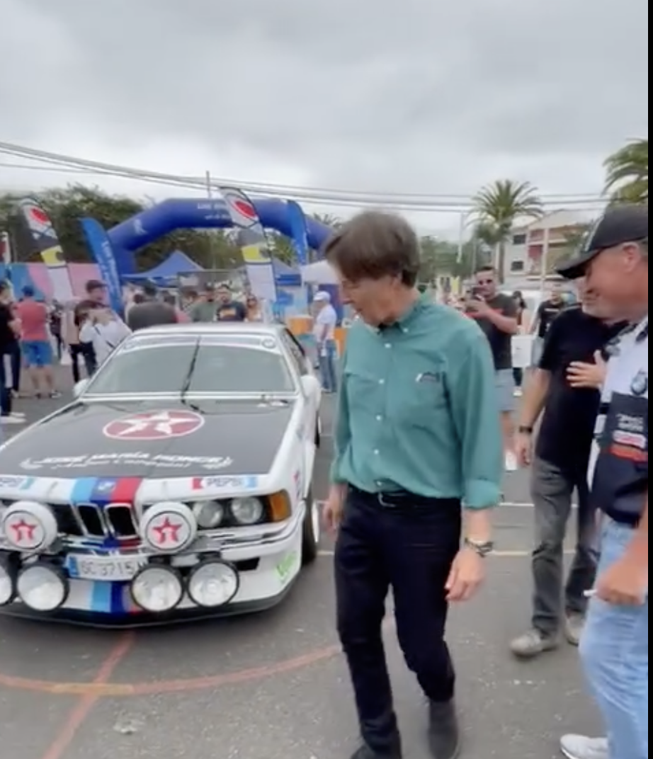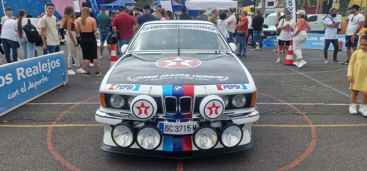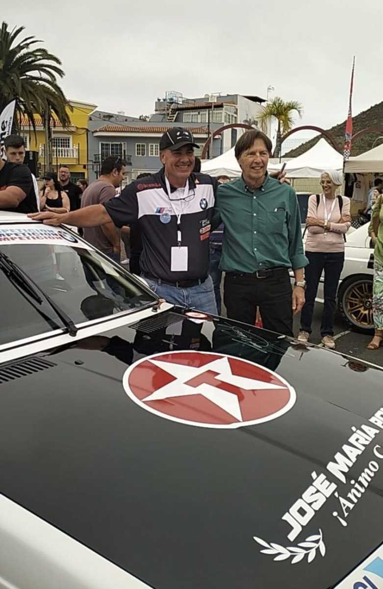 El tinerfeño Enrique Pérez vivió un día especial en la Fiesta del Motor de Los Realejos, puesto que el veterano piloto grancanario José María Ponce le firmó el capó del icónico BMW 635 CSI.