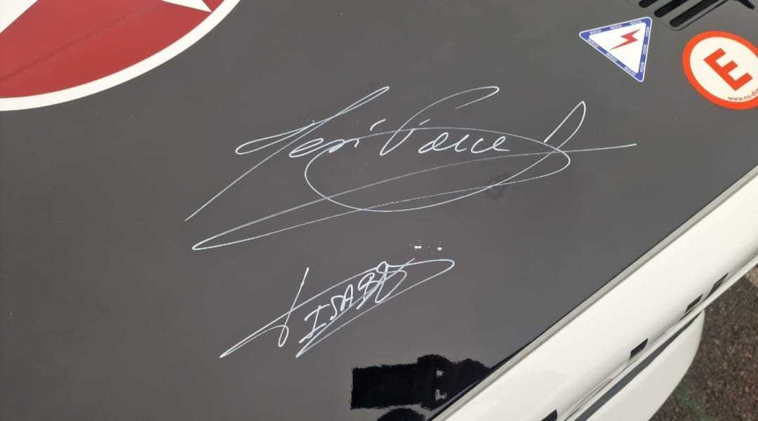Gracias por plasmar sus firmas en el BMW 635 CSI que tantos recuerdos nos viene a la memoria y tenemos los aficionados a las los rallys… Muchas gracias amigo y a seguir recuperando…