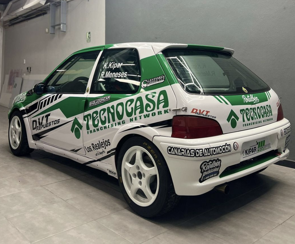 El equipo tinerfeño compuesto por Kevin Kipar y Rubén Meneses han desvelado los nuevos colores que lucirán en esta temporada 2024. Del rojo del curso pasado pasan al verde en el nuevo año con el Peugeot 106 rallye 1.6 8v, unidad con la que buscarán destacar en el Campeonato de Promoción de la Federación de Automovilismo de Santa Cruz de Tenerife (FIASCT).