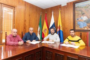 Raúl Afonso como alcalde de la Villa de Moya, y Germán Morales como presidente de Todo Sport, firmaron el nuevo acuerdo de colaboración en compañía de Gilberto Sosa, concejal de Deportes, y de Miguel Espino, coordinador de Seguridad del 48 Rally Islas Canarias.