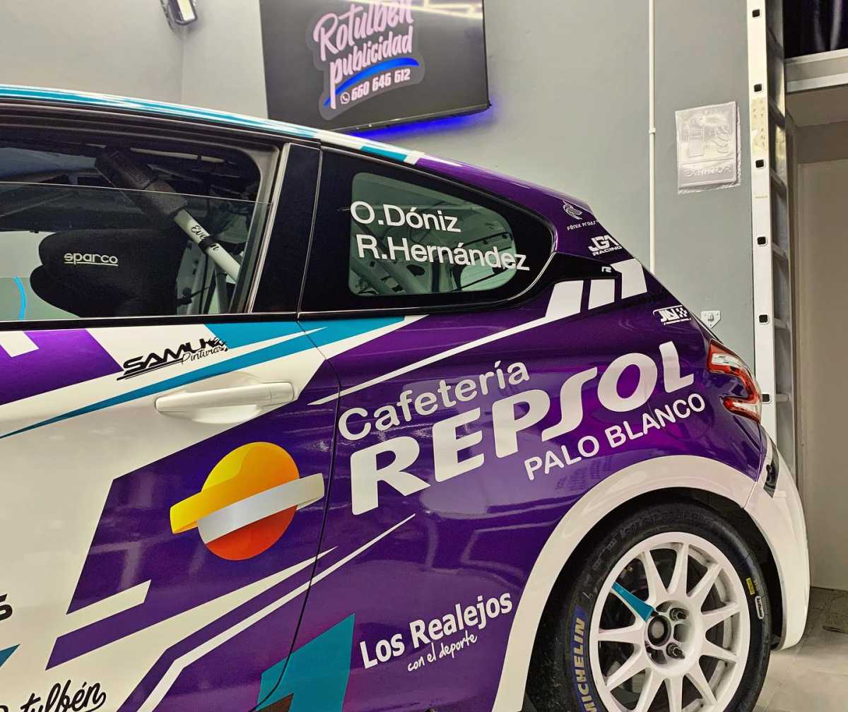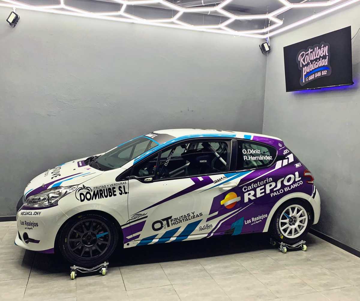 La agencia de publicidad tinerfeña Rotulben, dedicada a la publicidad de empresas, se encargó de la rotulación del Peugeot 208 R2 de Óscar Deniz y del BMW M3 de Rayco Tejera.