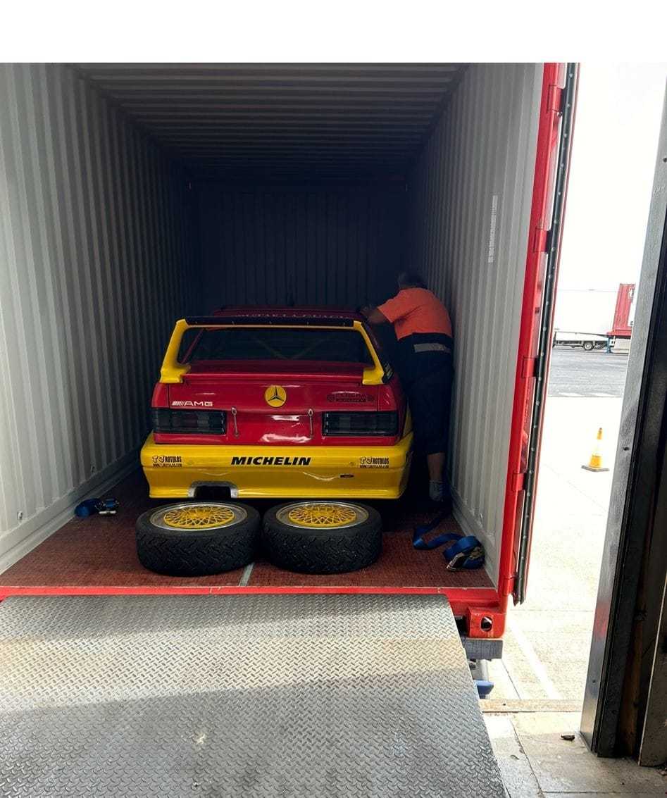 Por medio de los compañeros de 50Kmtv nos enterábamos que el Mercedes-Benz 190-E 2.3 del piloto veterano tinerfeño Santiago Padilla ‘El Percha’ había sido vendido y que ya ha puesto rumbo hacia tierras alemanas.