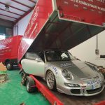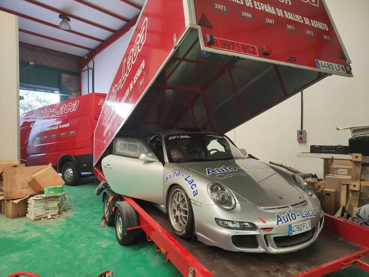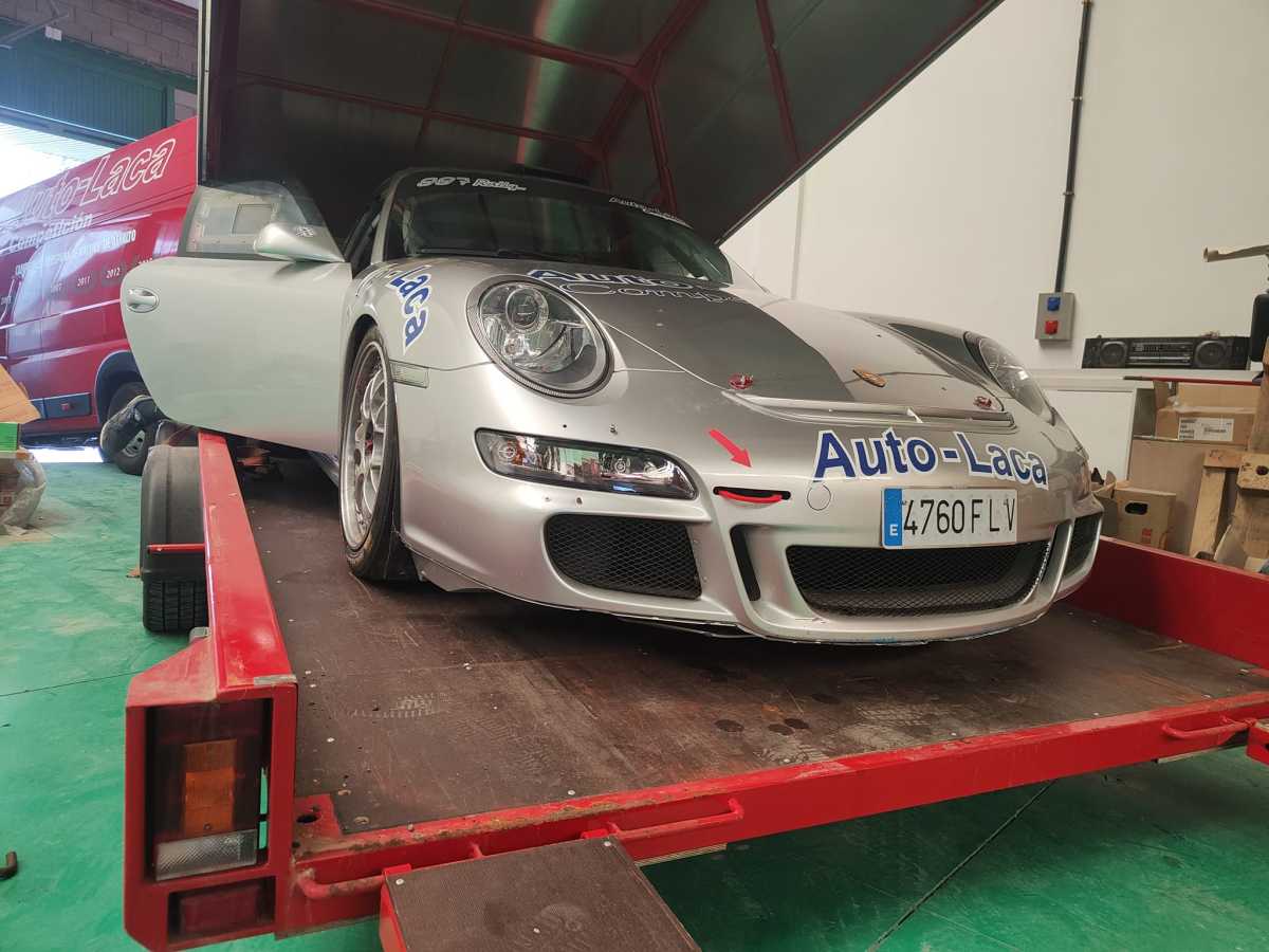 Toca usar los remolques para seguir la mudanza…El Templo se va quedando vacío para llenar la nueva nave con sus títulos.Otra unidad que posee el campeonato de España en su palmares .El 997 GT2