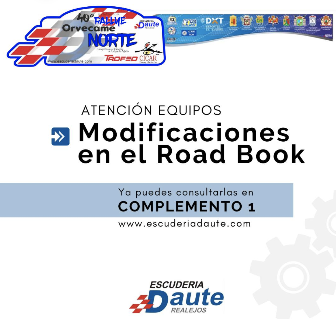 La organización del Rally Norte ha informado de la modificado el road book de la cita que se celebrará en el norte de Tenerife.