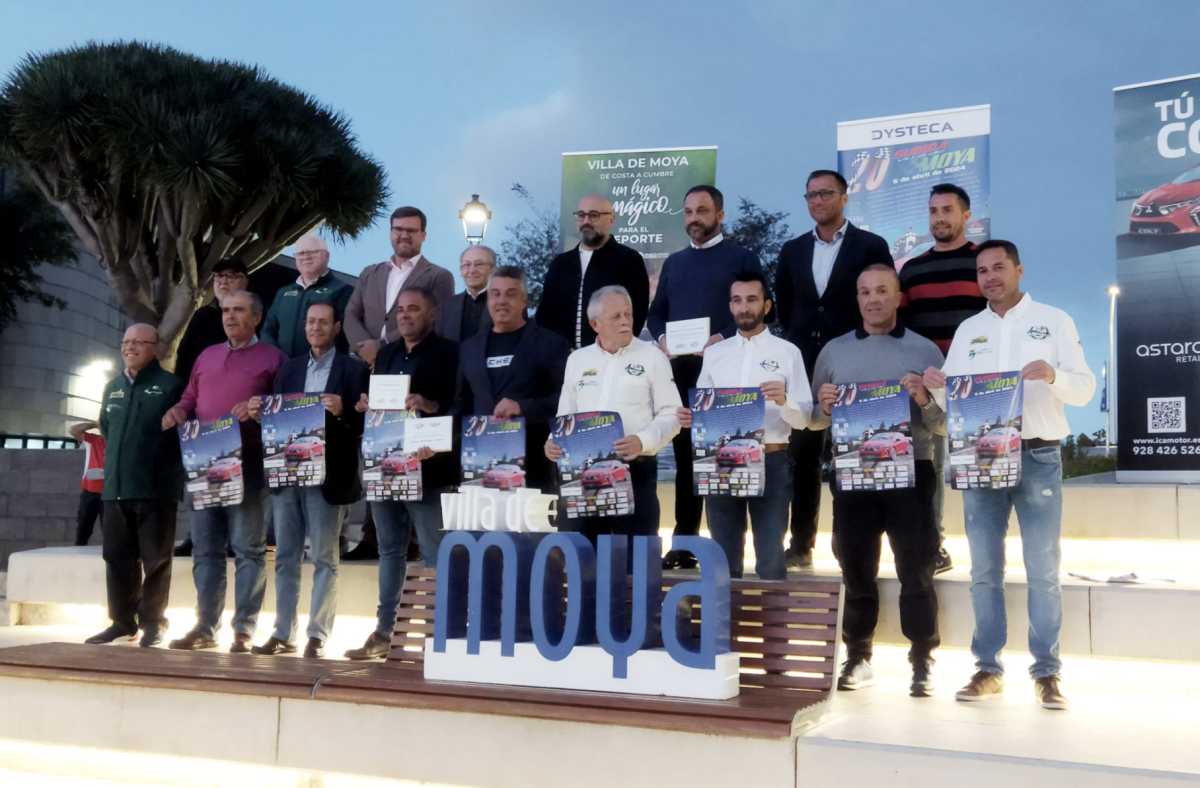 La presentación anoche de la Subida Villa de Moya tuvo una extensión a la historia de sus 20 años en el automovilismo canario, con un reconocimiento personal a los pilotos con más victorias y a los ex-alcaldes o concejales que en su día apostaron por esta prueba. Una efemérides que también se celebra esta temporada 2024 con la inauguración del Campeonato de Canarias de Montaña, además de continuar como segunda cita del certamen de Las Palmas. Una prueba que reunirá este sábado 6 de abril a unos 75 vehículos con pilotos de varias islas entre las tres modalidades a disputar, como son velocidad, fórmula rally y regularidad sport.