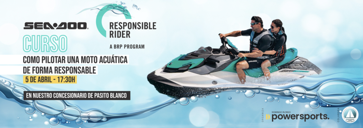 Domingo Alonso Powersports pone en marcha el programa “Responsible Rider”, un curso de formación gratuita para el uso responsable de motos de agua. La marca importadora en Canarias de SeaDoo, referente mundial en el sector de deportes acuáticos, abrirá las puertas de su concesionario en Pasito Blanco para impartir junto a la Académica Náutica Araña un curso enfocado a la responsabilidad a bordo de una moto de agua. La primera sesión de “Responsible Rider” tendrá lugar el próximo viernes 5 de abril a partir de las 17.30h.