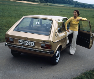 Llegó en el momento justo: El Audi 50, el primer coche pequeño de un fabricante alemán, se lanzó en 1974, poco después del inicio de la crisis del petróleo en 1973. Su consumo de combustible era económico y su diseño pionero: tracción delantera con motor transversal, portón trasero de dos puertas con un gran maletero y respaldo abatible, dimensiones exteriores compactas, y un comportamiento en carretera y unas características de conducción atractivos. Además, el Audi 50 fue el prototipo del VW Polo, estructuralmente casi idéntico, que se lanzó siete meses después, aprovechando las sinergias dentro del Grupo Volkswagen, que ya eran una receta para el éxito hace medio siglo.