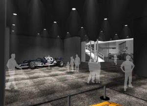 Se trata de una sala museo muy visual, diseñada en su totalidad en color negro, y con potentes focos sobre cada vehículo expuesto para en enmarcar cada rincón en exhibición, permitiendo así a los visitantes ver y sentir la belleza de los más emblemáticos vehículos de carreras que presentan la tecnología de vanguardia de cada época que representa.