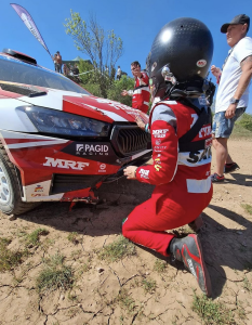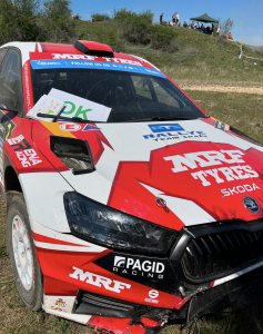 Llarena también causó daños en la parte trasera izquierda de su Fabia con un «momento complicado en quinta marcha» en el TC2, que dañó el soporte del alerón trasero de su coche.