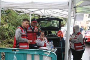 Foto 13: Los comisarios de la prueba lo pasaron cauttas ante la presencia de la lluvia, por eso aprovecharon el mínimo parón para resguardarse de la incómoda lluvia.