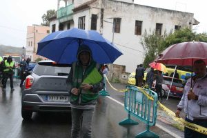 Foto 14: Leo Perera, responsable de las Relaciones con los participantes, estuvo bien resguardado por su ‘pequeño’ paraguas, compañero de viaje de la mayoría de presentes en la rampa grancanaria.