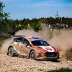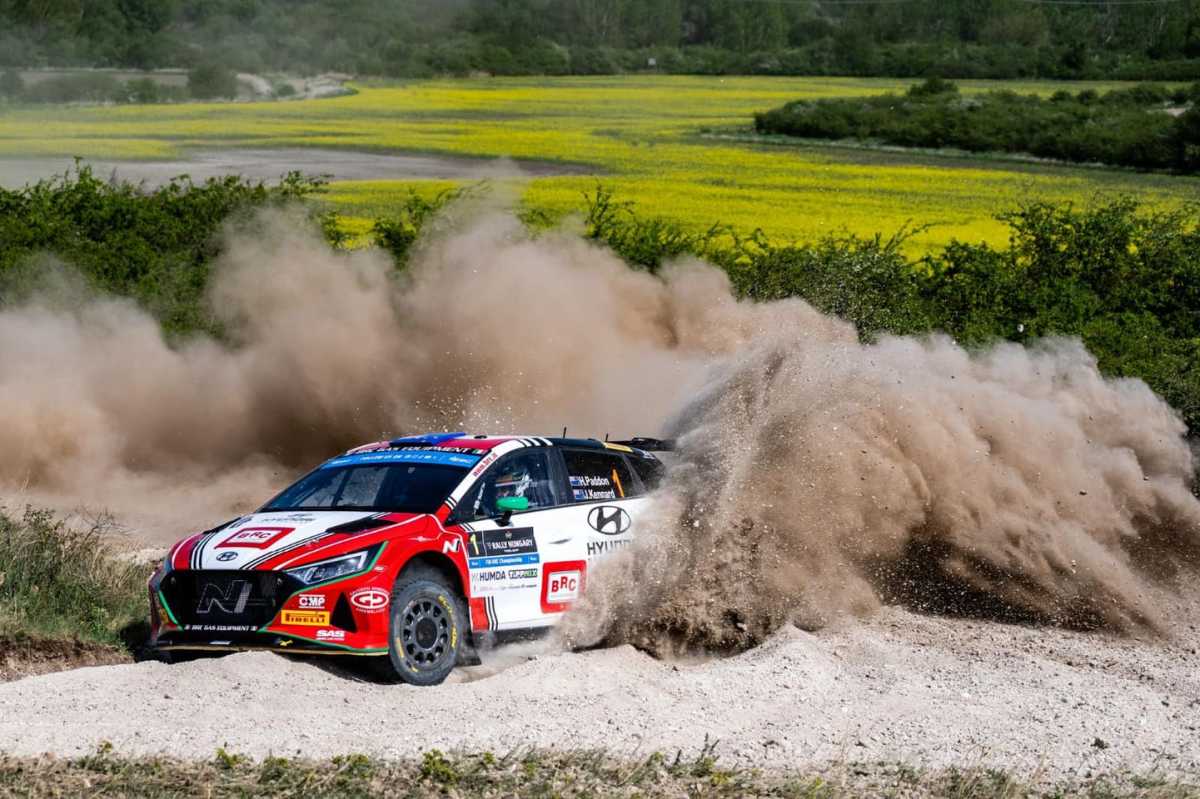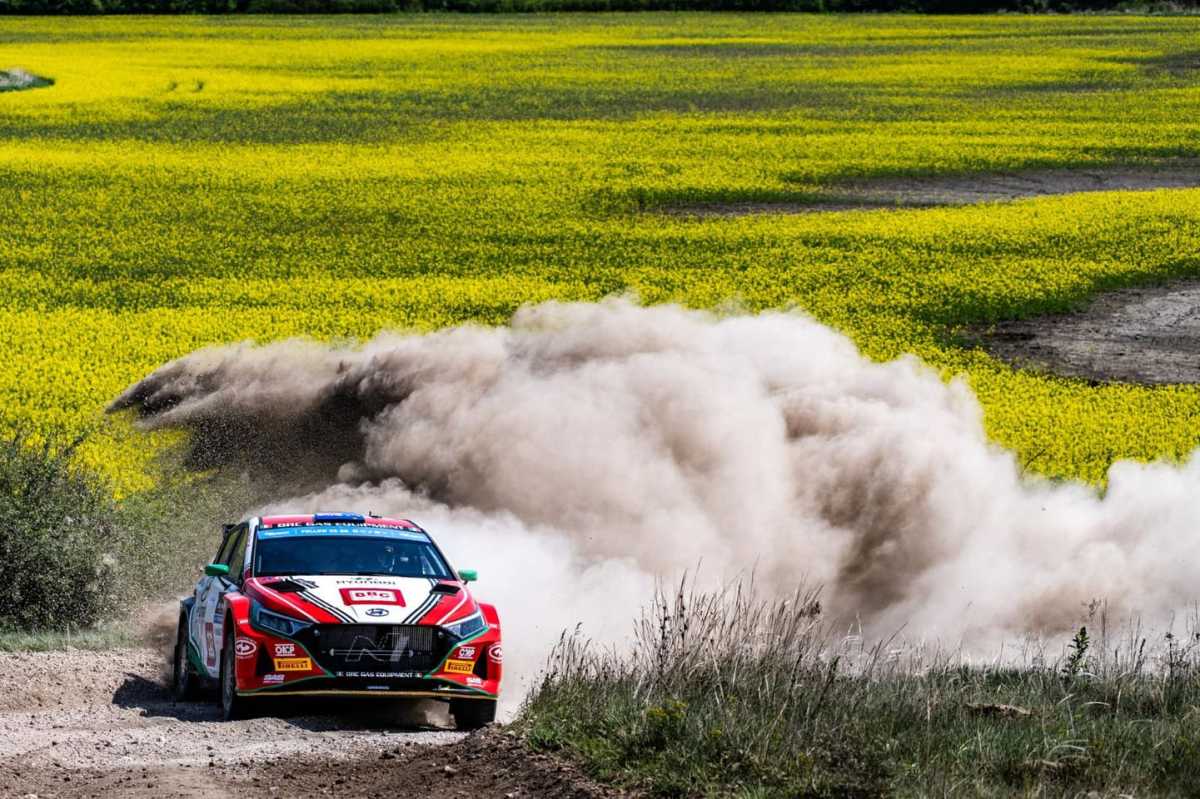 Los neozelandéses Hayden Paddon y John Kennard (Hyundai i20 N Rally2) ocupaban la segunda posición del V-Híd Rallye de Hungría, cita inaugural del Campeonato de Europa de Rallyes de la FIA, pero en el último tramo sufrían daños en el neumático delantero izquierdo, cayendo al cuarto lugar.