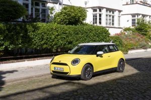 MINI presenta en Auto China 2024 el Cooper E en acabado Favoured Trim. Los exclusivos detalles exteriores de dicha variante de equipamiento, se ven perfectamente en el color Sunny Side Yellow con techo en contraste y carcasas de los retrovisores en blanco. El MINI Cooper E impresiona con sus 135 kW/184 CV y su emocionante aceleración. La batería del MINI Cooper E (consumo combinado: 14,3-13,8 kWh/100 km según WLTP; emisiones combinadas de CO2: 0 g/km; clase de CO2: A) alcanza una autonomía de 305 kilómetros en el ciclo de pruebas WLTP con una capacidad de 40,7 kWh. 28 minutos de tiempo de carga a 75 kW son suficientes para cargar la batería del MINI Cooper E del 10 al 80 por ciento.