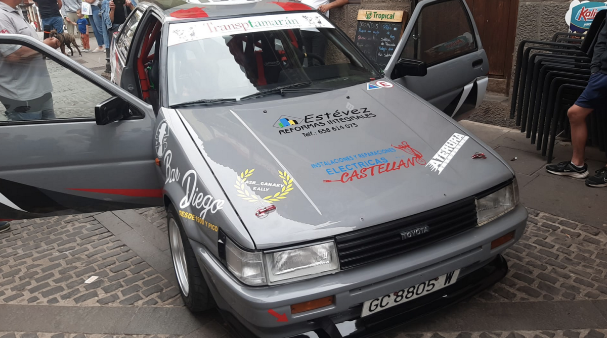 El equipo grancanario compuesto por los veteranos José Antonio Estévez y Öscar Ramos presentaron en el Bar Diego, en Teror, la nueva rotulación y colores que lucirá esta temporada 2024 el Toyota Twin Cam con el que competirán.