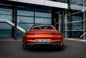El rasgo más identificativo del modelo superior de la serie AMG GT de dos puertas es la sección trasera. Las novedades integradas son la tapa de carga integrada y el nombre del modelo resaltado en rojo. En la parte exterior también hay embellecedores dobles trapezoidales ranurados para el tubo de escape. El distintivo «E PERFORMANCE» en el lateral indica la exclusividad de la propulsión. De serie, el híbrido rueda sobre llantas de aleación AMG de 20 pulgadas en diseño de 10 radios. Están optimizadas aerodinámicamente, pintadas en gris tantalio y acabadas con un acabado de alto brillo. Las dimensiones en el eje delantero son 295/35 R 20 en 10,5 J x 20 y en el eje trasero 305/35 R 20 en 11,0 J x 20.