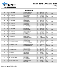 El Rally Islas Canarias 2024 se despide a la grande del Campeonato de Europa, SuperCampeonato de España de Rallys, Campeonato de Canarias y Las Palmas de Rallys con una lista de inscritos que contempla un total de 33 monturas Rally2.