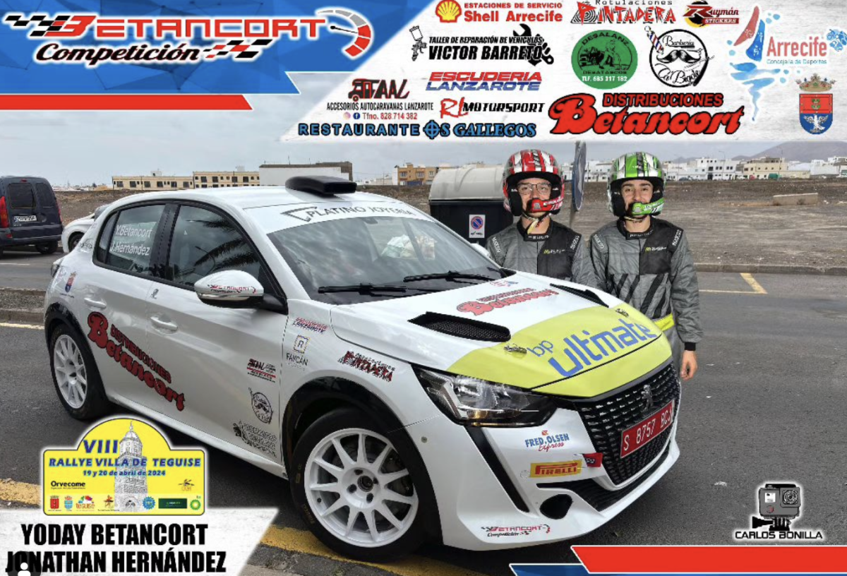 Publicamos el vídeo de cámara interior del equipo compuesto por el lanzaroteño Yoday Betancort y el majorero Jonathan Hernández (Peugeot 208 Rally4) en el Rally Villa de Teguise 2024.