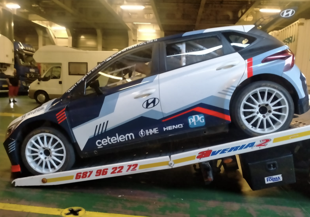 El nuevo Hyundai i20 N Rally2 que recientemente adquirió el piloto grancanario Benjamín Avella salía desde Huelva a mitad de esta semana y este jueves arribaba en el muelle de Las Palmas de Gran Canaria.