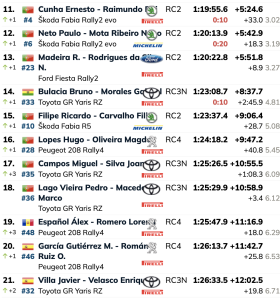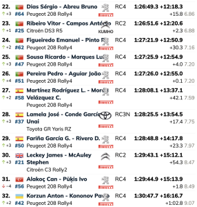 Autor de un buen final de rally con dos scratch, el galo Pierre-Louis Loubet (Skoda Fabia RS Rally2) finalizó segundo tras ir ganando progresivamente ventaja sobre su compatriota Yohan Rossel (Citroën C3 Rally2).