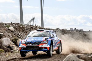 Gustavo Sosa y Alba Sánchez -líderes de la Categoría 1- no empezaron con buen pie a los mandos de su Skoda Fabia Rally2 Evo. El majorero, sin embargo, puedo escalar posiciones a medida que se celebraban tramos hasta quedarse a las puertas de la victoria, materializando así la segunda plaza, importante a nivel de puntos y a tenor de las bajas que se cobró la prueba.