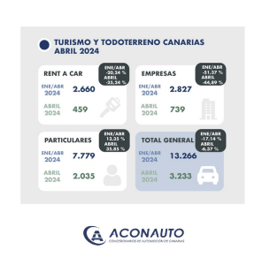-Las matriculaciones del pasado mes de abril, caen un 6,37% en el segmento de turismos y todoterrenos con 3.233 matriculaciones.