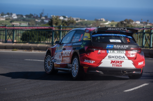 Los líderes del CCRA (Campeonato de Canarias de Rallyes de Asfalto), Yeray Lemes / Rogelio Peñate, han situado a continuación su Citroën C3 Rally2, por delante del Škoda Fabia RS Rally2 pilotado por Efrén Llarena / Sara Fernández y del Ford Fiesta Rally2 con el que compiten a nivel insular Enrique Cruz / Yeray Mujica.