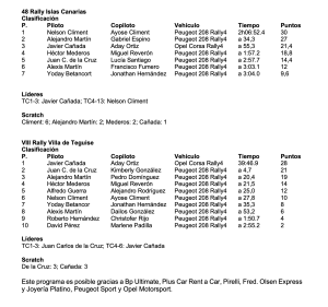 bien por alguna avería o por salida de carretera no pudieron completar el recorrido y con ello seguir sumando puntos como ya hicieron en el inaugural Rally Villa de Teguise. Sin duda, verlos en la próxima cita será la mejor de las noticias.