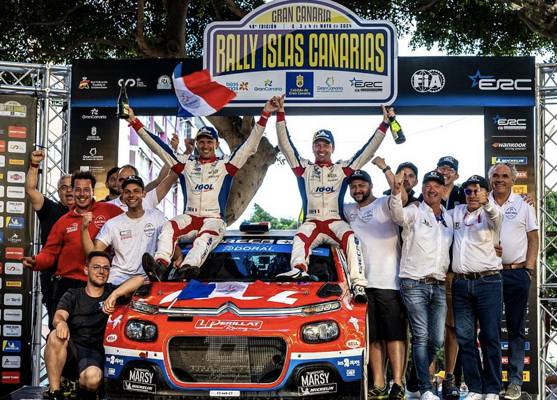 Yoann Bonato (Citroën C3 Rally2) logró su segunda victoria consecutiva en el Rally Islas Canarias con una actuación impecable en la segunda ronda del Campeonato de Europa de Rallyes FIA 2024.