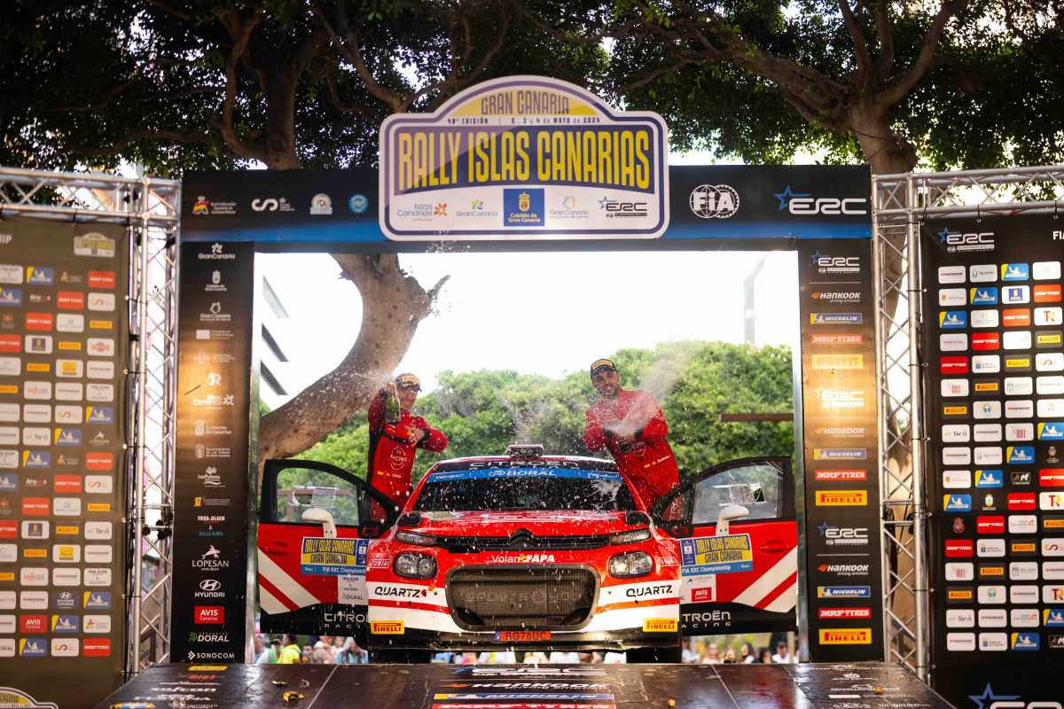 Emoción a raudales en un Rally Islas Canarias de los que hacen afición, donde el Citroën Rally Team ha peleado con honores hasta los kilómetros finales por un nuevo triunfo en el S-CER (Supercampeonato de España de Rallies). La cita más internacional de nuestro país, valedera al mismo tiempo para el ERC (European Rally Championship), se ha resuelto definitivamente en la última especial, después de una lucha titánica que ha vuelto a encumbrar al Citroën C3 Rally2 como uno de los vehículos más pujantes de la categoría.