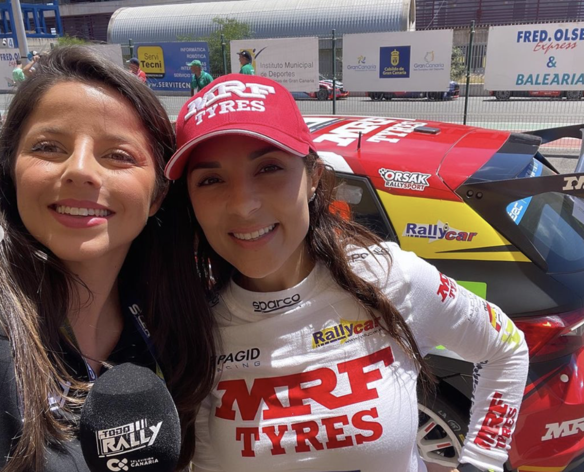 En la previa a la celebración del Rally Islas Canarias, en el tramo del Cenobio Valerón, donde los equipos realizaron los test previos a la cita del Campeonato de Europa de Rallys, la joven y prometedora periodista grancanaria Rita Déniz, cuyo trabajo en la Televisión Canaria demuestra su gran profesionalidad y destacado conocimiento del deporte que habla -su padre tiene mucho que ver en su pasión por los rallys-, tuvo la oportunidad de subirse al lado del campeón de Europa de Rallys en la temporada 2022, el burgalés Efrén Llanera, que en su Skoda Fabia RS Rally2 hizo disfrutar de lo lindo a su invitada, que en una pasada por el tramo del norte de Gran Canaria ‘sustituyó’ a la siempre brillante Sara Fernández.