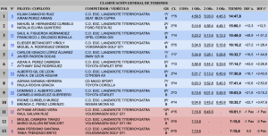 Kilian y Airám invirtieron un tiempo total de 14:47,8, logrando superar en 12.3 a Nahuel M. Hernández y Natalia Elvira Quintero (Ford Fiesta R2), segundos. El último escalón del podio fue a parar a manos de Saúl A. Figueroa y Francisco J. Delgado (Opel Corsa GSI)