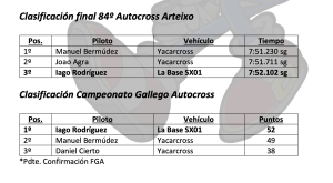 «De todas formas, estamos contentos porque fuimos los mejores en el Trofeo MRF Autocross, además de mantener el liderato del campeonato. El equipo ha hecho un gran trabajo, y esperamos seguir en esta línea positiva en la siguiente carrera, que será en Carballo a principios de junio”, sentenció.