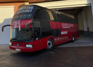 Desde hace semanas el laureado equipo tinerfeño Auto-Laca Competición ha ido trasladando sus coches de competición a sus nuevas instalaciones, siendo una de las unidades que ha salido a la pala guagua de en las nuevas instalaciones.
