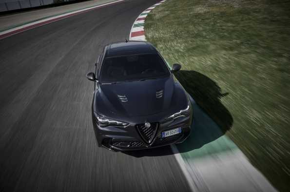 La mejor dinámica de conducción de su clase, fruto de una sorprendente ligereza, dado el uso de materiales ultraligeros como el aluminio para el motor y la fibra de carbono para el eje de transmisión, el capó, el alerón y los faldones laterales. En el Giulia, la aerodinámica se mantiene activa con el “splitter” delantero de fibra de carbono: cuando se activa, controla la calidad del flujo de aire debajo del vehículo, para aumentar la estabilidad y el rendimiento. Por último, pero no menos importante, el sistema de escape Akrapovič por su sonido inconfundible.