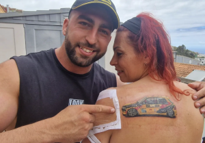 De sorpresa mayúscula podemos catalogar lo que ha hecho la madre del piloto tinerfeño Pedro Jesús Cabrera, que se ha tatuado en la espalda el Peugeot 106 S16 con el que lleva compitiendo estas últimas temporadas su hijo.