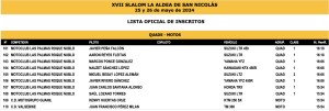 LISTA OFICIAL INSCRITOS SLALOM LA ALDEA 2024