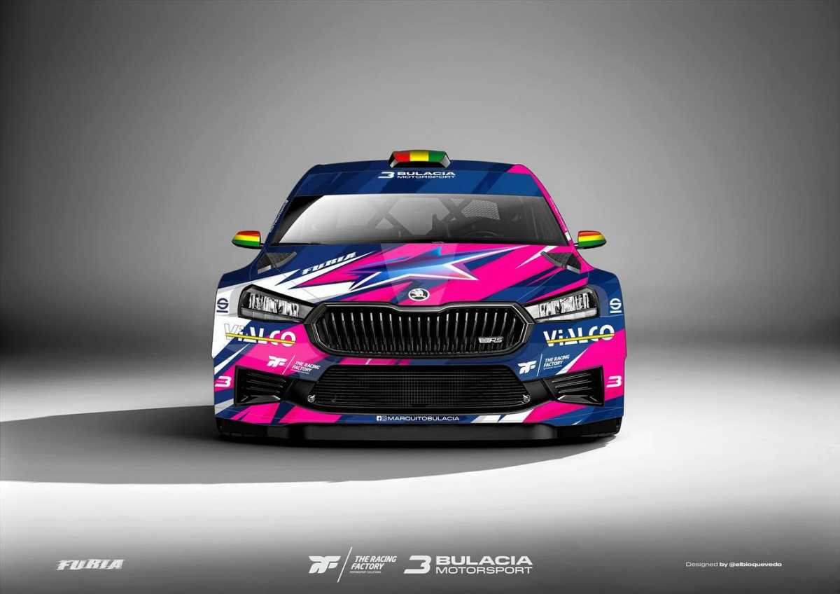 El piloto boliviano Marquito Bulacia ha mostrada la nueva rotulación que lucirá el Skoda Fabia RS Rally2 con el que competirá este curso.