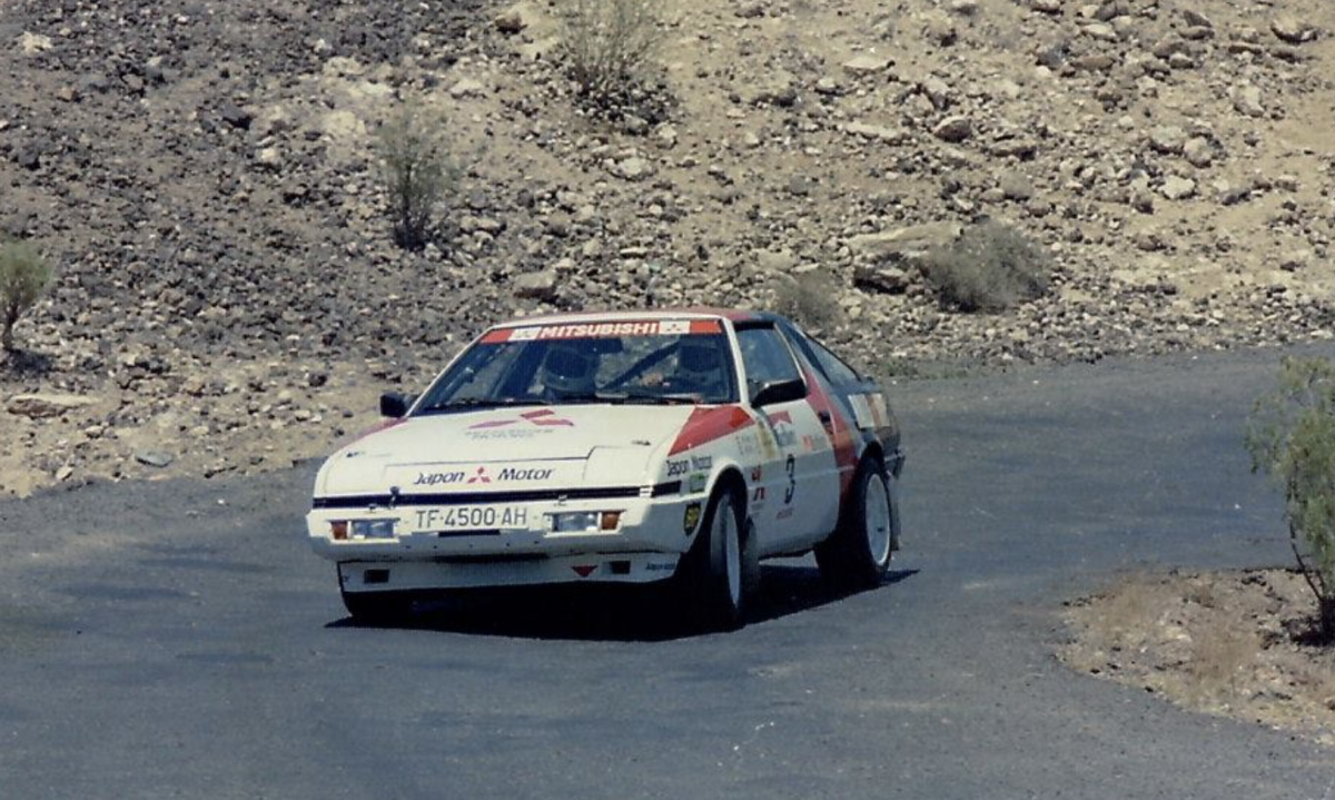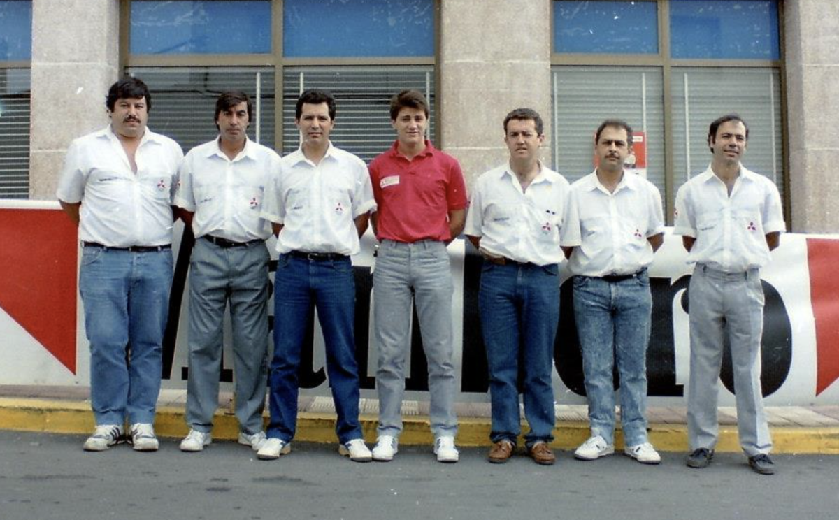 VII Rally Sprint de Atogo ( Tenerife, 1989 ). Staff técnico y asistencial del Equipo Japón Motor en torno al Mitsubishi Starion 2000 Turbo (Grupo A), sección coordinada por Joaquín Ortega.