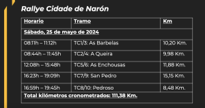 La prueba, que contará con diez tramos que completan un recorrido cronometrado de algo más de un centenar de kilómetros, arrancará el viernes con un desfile de los equipos participantes por la localidad de Narón, mientras que la actividad competitiva tendrá lugar a lo largo del sábado.