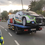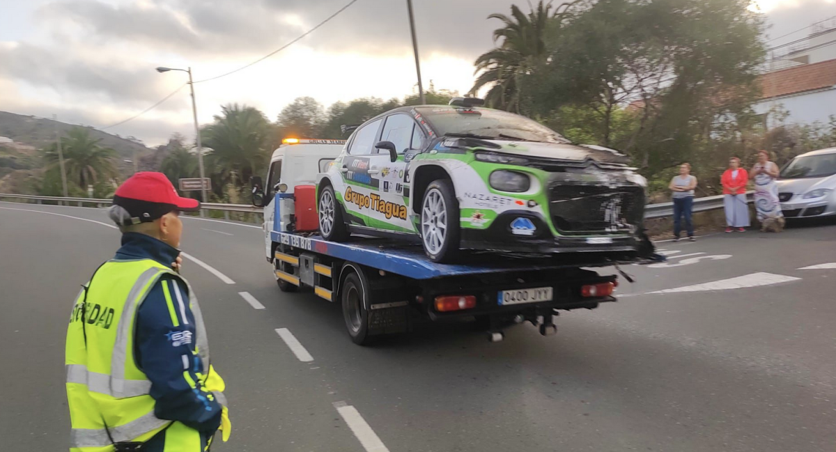 El primer tramo cronometrado del Rally Isla de Gran Canaria tuvo que ser parado al incendiarse el Citroën C3 Rally 2 de los lanzaroteños Oscar Cabrera y Aitor Camberio.