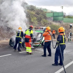 La rápida llegada de los bomberos evitó que la montura de Sports & You Canarias ardiera en su totalidad, pero ha quedado seriamente dañada, no pudiendo continuar en carrera.