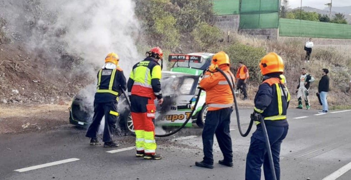 El primer tramo cronometrado del Rally Isla de Gran Canaria tuvo que ser parado al incendiarse el Citroën C3 Rally 2 de los lanzaroteños Oscar Cabrera y Aitor Camberio.