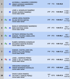 Clasificación del 17° Trofeo ENMA 2RM Servicios después de la celebración del 63 Rallye Isla de Gran Canaria