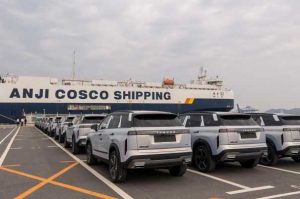 Altos cargos de JAECOO, la firma de todoterrenos ‘hermana’ de OMODA, han querido despedir en una ceremonia histórica el primer gran lote de JAECOO 7 con destino a nuestro mercado. Se espera que 120 unidades desembarquen en el puerto de Valencia a Ro-Ro (mediante rampa) y que entre la última semana del mes y la primera de agosto, el resto del cargamento lo haga en el de Barcelona mediante contenedores.