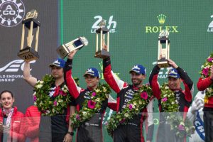 Los campeones del mundo del TOYOTA GAZOO Racing superaron los problemas que sufrieron en la primera parte del evento para luchar por la victoria en el tramo final, recuperándose con unas condiciones climáticas extremas cuando apareció la lluvia gracias a la habilidad de los tres pilotos del GR010 HYBRID, eficientes paradas en boxes, una estrategia inteligente y un fuerte espíritu de equipo.