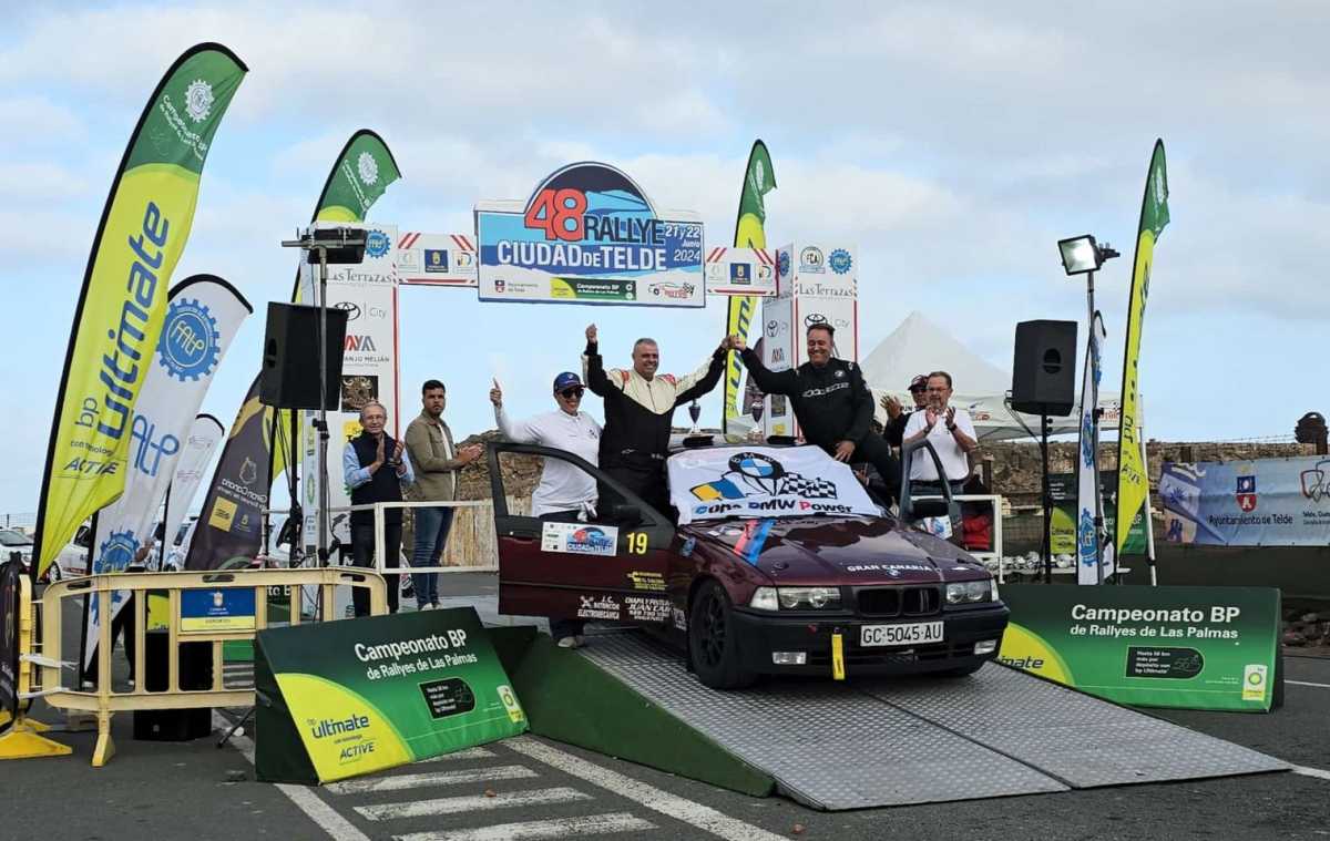 Pronto sufrieron problemas mecánicos en su BMW los grancanarios Javier Castro y Manuel Blanco, pero pudieron solventarlos para acabar el Rally Ciudad de Telde 2024.